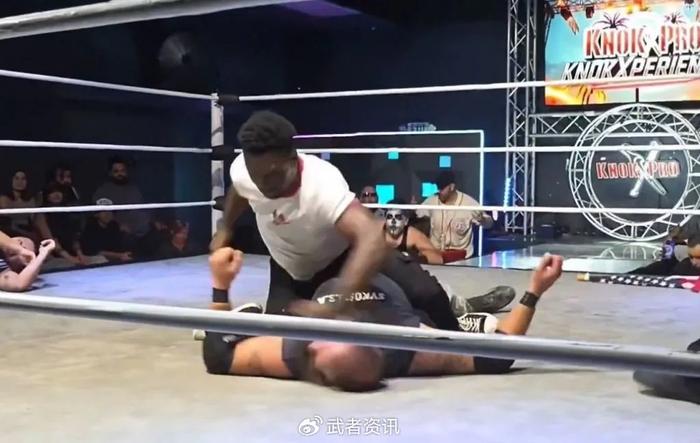​武者网讯 当地时间8月23日,在美国洛杉矶举行的一场职业摔角表演节目中,前UFC轻重量级冠军昆顿·杰克逊(Quinton Jackson)的儿子拉贾·杰克逊(Raja Jackson)突然冲上擂台,对摔跤手“Syko Stu”斯图尔特·史密斯(Stuart Smith)持续殴打致对方昏迷。