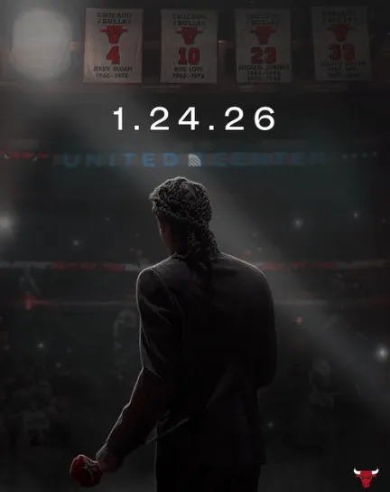 “欢迎参加德里克-罗斯的球衣退役之夜,届时我们将正式把1号球衣高挂联合中心球馆之上。”